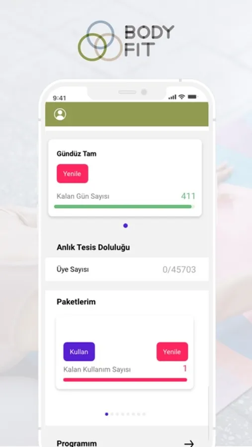 BodyFit üyeliğinizi yönetmek için kullanılan bir IOS uygulamasıdır. Rezervasyon Alma ve Stüdyo Ders İşlemlerini gerçekleştirebilen Senkron Yazılım tarafından üretilmiş bir IOS uygulamasıdır.