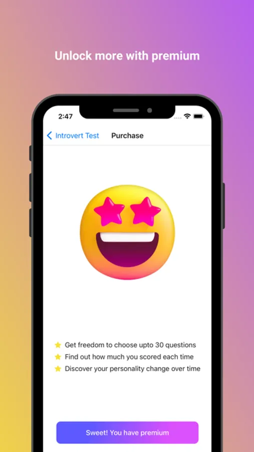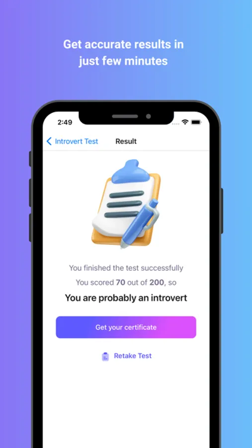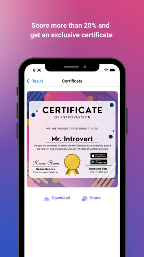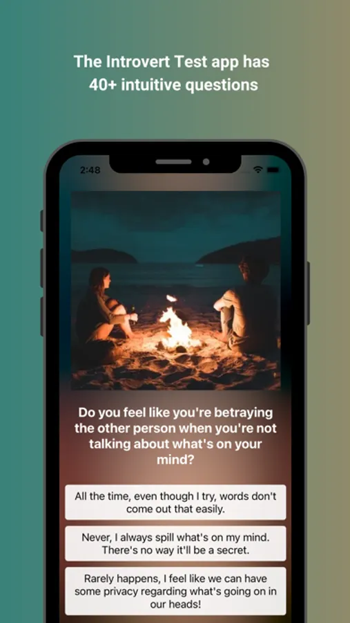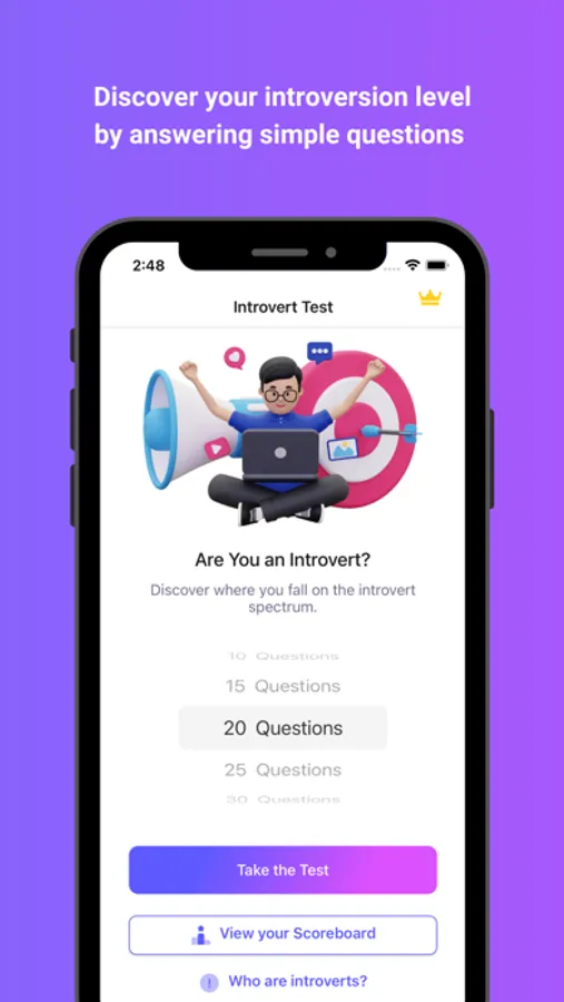 Take our extensive test having more than 50 questions by downloading Introvert Test now! Discover if you're an introvert, extrovert or fall somewhere in the middle on the introvert-extrovert spectrum quiz.