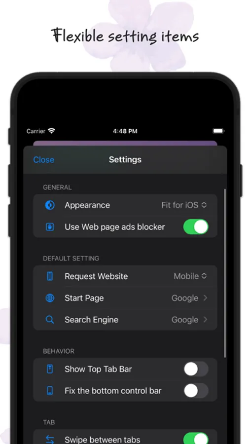 ・Tab switching by swiping