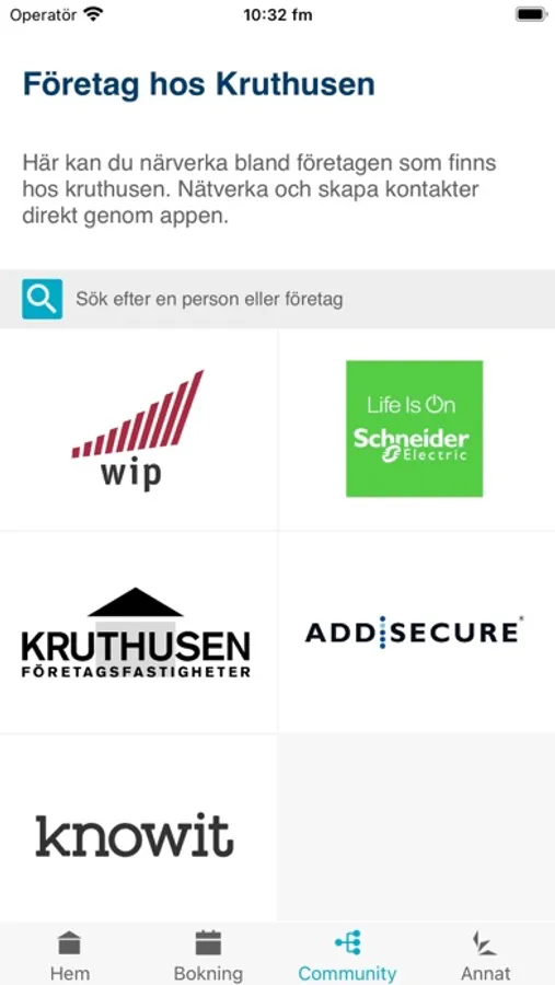 Appen låter alla gäster till kruthusen att nätverka band företagen, skicka rapporter eller registrerar sig för parkering.