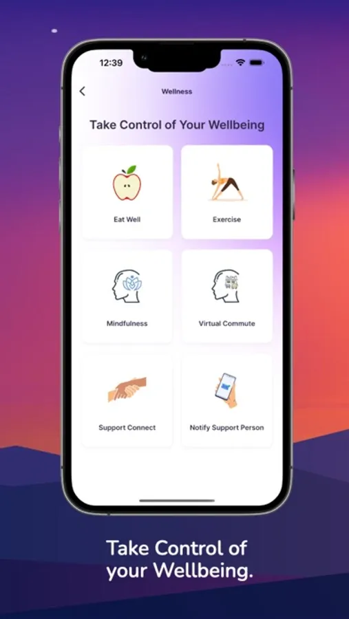 The Mind Pulse App is designed to be simple and allows people to take control of their own wellbeing. It provides a connection point back to their organisation to allow for proactive care and support to be given, and provides an array of wellbeing tips and tools to improve wellbeing ranging from mindfulness, exercise, nutrition and connection to psychological support.