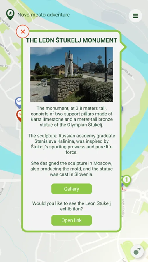 Novo Mesto experience leads you through five stops and each is in the AR presented with the well-known person of the past, along with its role and the importance for the town's history. They all tell you a little more about their era, there is also a gallery containing some additional information and facts.