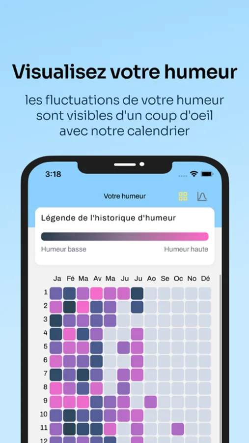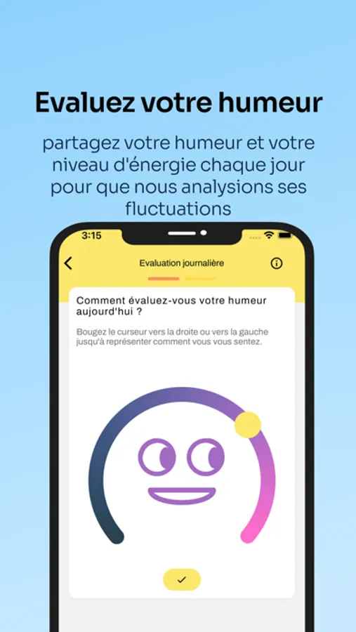 - Partagez votre humeur et votre niveau d'énergie chaque jour pour que nous analysions ses fluctuations