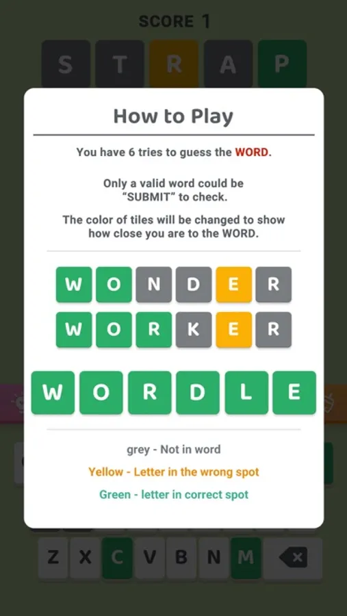 1.Hunt the hidden word with six tries each game. The word you submit should only be a valid 5-letter word.