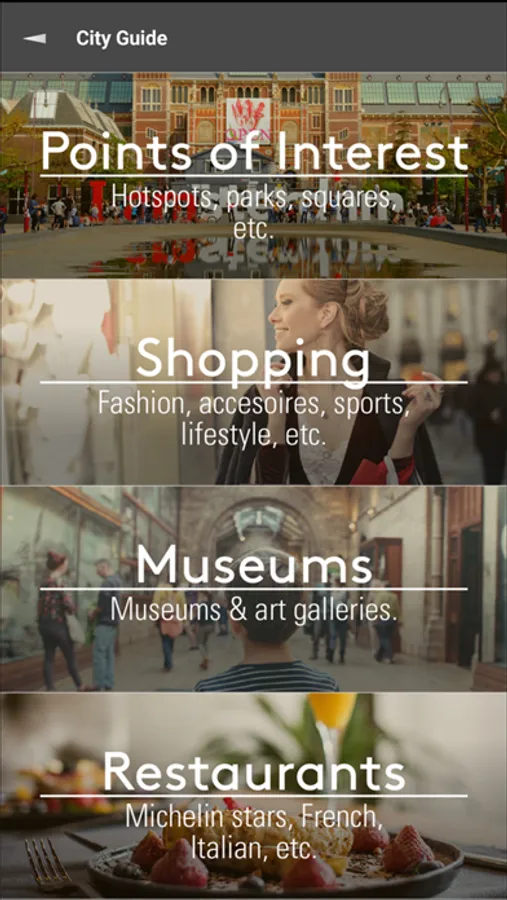 City guide with all points of interest, and special venues selected by locals.