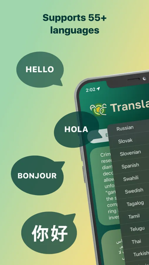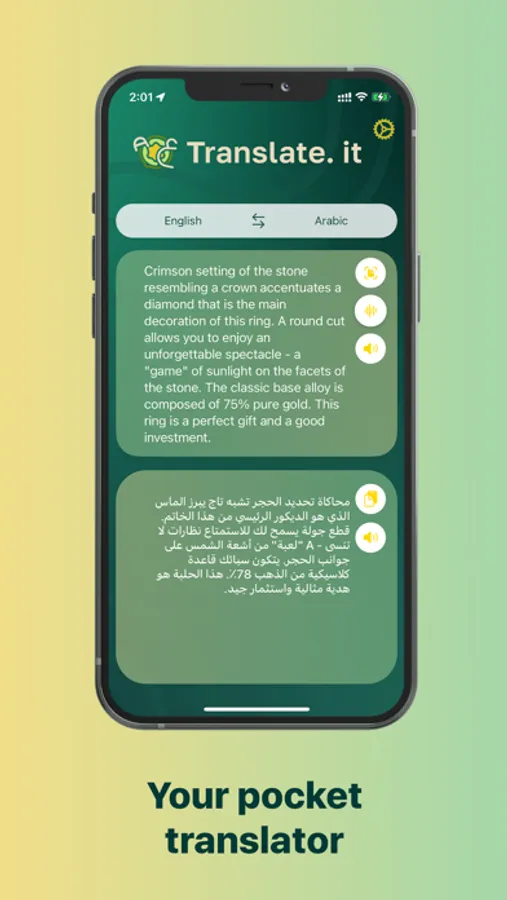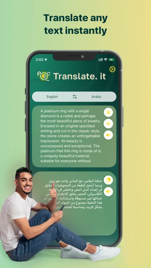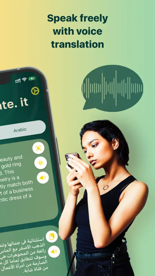 Translate.it is an artificial intelligence-based speech translator. You can translate your speech into more than 55 languages anytime and anywhere.