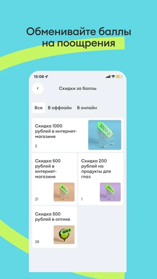 • Заказывать поощрения: скидки в интернет-магазине или оптике, предложения от партнёров!