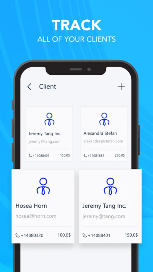 When you add your customers and enter their information into the application, you can have some fields filled automatically by selecting one of your registered clients in the client section while preparing your invoices. In addition, the application automatically saves your invoices according to your clients. Thus, when you select a person from the clients section, you can view all the invoices you have saved for the client.