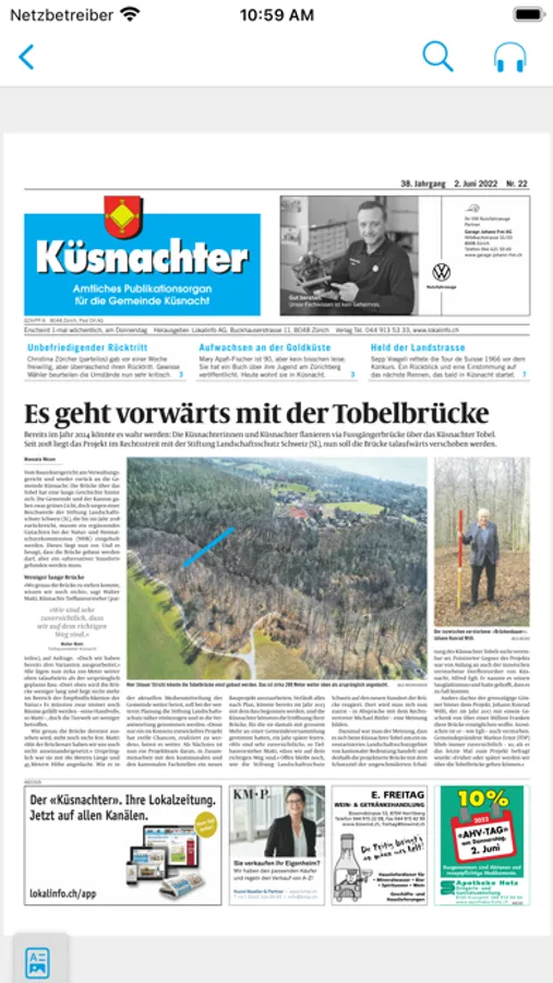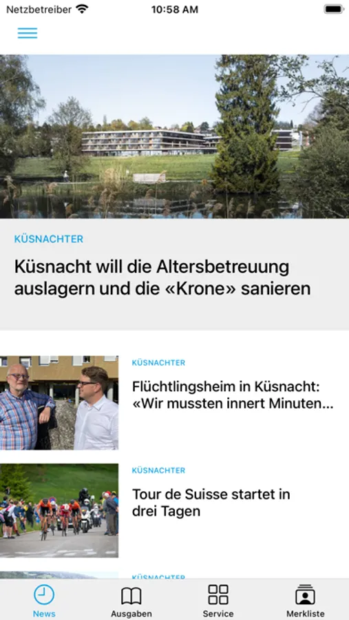 Die App bietet eine Übersicht über die aktuellsten News und Beiträge, die Zeitung als E-Paper, ein persönliches Ausgaben- und Artikelarchiv und vieles mehr. Unter anderem kann man sich die Zeitungsartikel auch vorlesen lassen oder die Schriftgrösse individuell einstellen. Ebenfalls ist es möglich, den Push-Service des «Küsnachters» zu abonnieren.