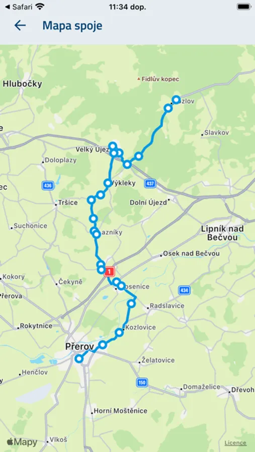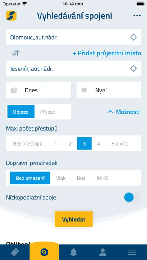 Dalšími funkcemi je vyhledávání spojení, zobrazení odjezdů z vybrané zastávky, sledování jedoucího spoje na mapě a informace o kontaktních místech v systému IDSOK.