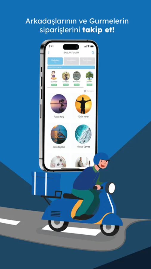 Kimler ne sipariş ediyor, nereye gidiyor merak ediyor musun? Reztoran’da arkadaşlarını, favori gurmelerini ve fenomenleri takip edebilir; nerelerden sipariş verdiklerini, nerede yemek yediklerini, favori restoranlarını ve yemeklerini görebilir, yorumlarına ve puanlamalarına bakabilirsin! Dilersen arkadaşlarınla sohbette edebilirsin!