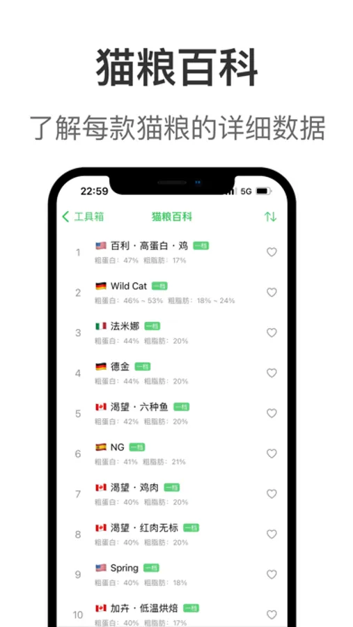包括罐头和干粮的数据详情,比如蛋白质脂肪含量,星级评定以及优缺点点评。你还可以通过食量计算器得出科学的食物喂养重量。