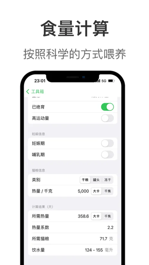 备忘提醒,物资储备,猫粮及罐头百科,还有食量计算工具,养猫过程中可能会用到的东西。