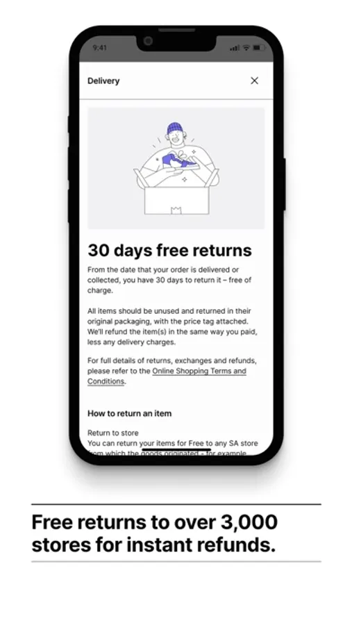 Free returns (excluding furniture) to 3,000+ TFG stores, or we can arrange a courier collection from your preferred address.