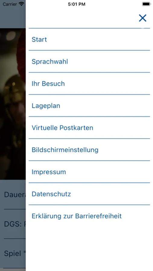 The app is the audio/multimedia guide to the permanent exhibition and to the outdoor area, the Römerbaustelle Aliso. Here you will receive audio tours in German and English, extended information in the form of texts, videos and images, as well as guided tours in German Sign Language (DGS).