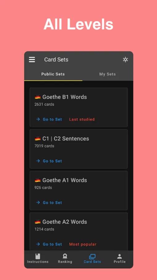 Cardly is perfect for beginners, intermediate, and advanced learners of German. You can choose from a variety of flashcard sets to tailor your learning experience to your needs.