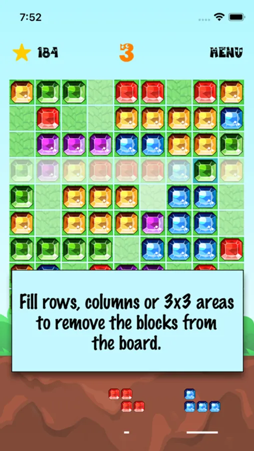 - Fill rows, columns or 3x3 squares with block to remove them from the board and collect points.