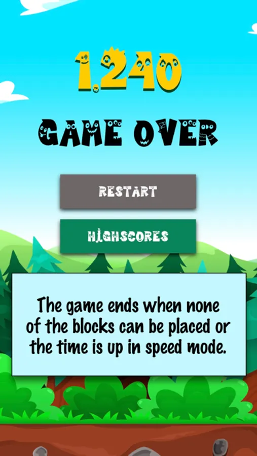 - The game ends in normal mode, when none of the available tiles can be placed or in speed mode, when the time is up.