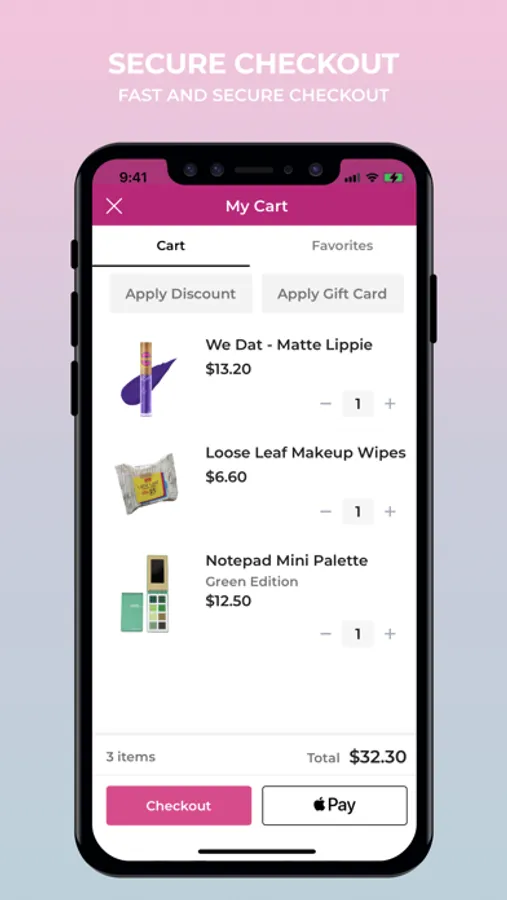Tap, swipe, shop and secure your new products in an instant with our super easy checkout.