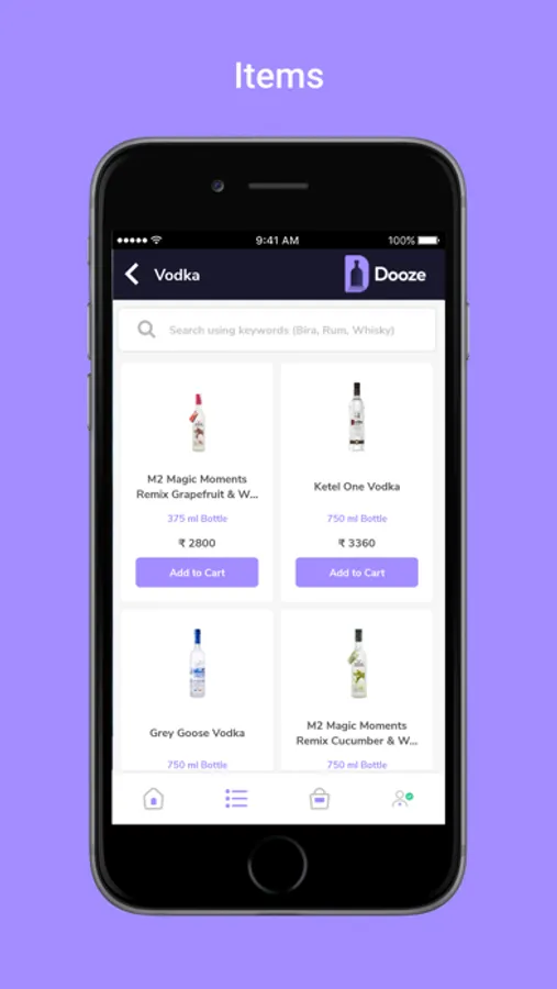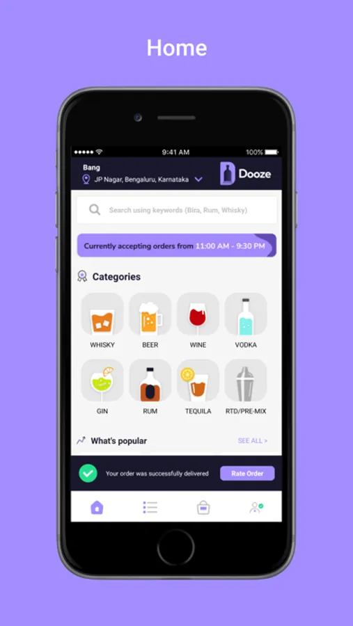 Dooze delivers your favorite alcoholic beverages to your doorstep, on-demand. Simply enter your delivery address or location, add your favorite wine, beers, or spirits to your cart & check out. Your order will be delivered in a jiffy. Dooze works with retail partners to make buying alcohol reliable and super easy.