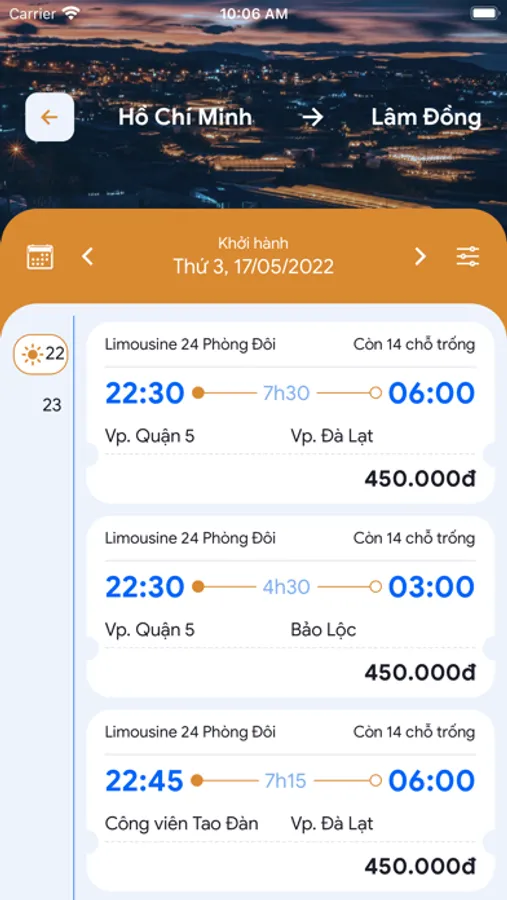 - Ứng dụng đặt vé xe của Công ty TNHH Thương mại và Vận tải An Anh Quê Hương giúp cho hành khách tra cứu thông tin xe trực tuyến đi tuyến TP. Hồ Chi Minh - Ninh Thuận/Đà Lạt mang lại trải nghiệm nhanh chóng và tiện lợi nhất từ việc đặt vé đến sử dụng dịch vụ vận chuyển hành khách.