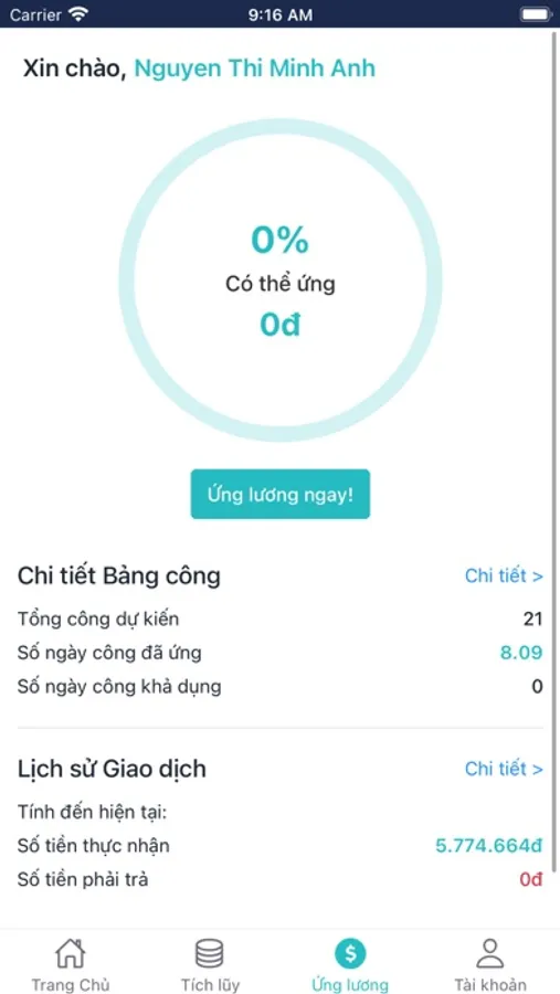 - Nhận lương sớm 24/7 kể cả ngày nghỉ, lễ