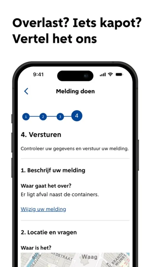 Met de Amsterdam App heeft u de gemeente altijd binnen handbereik. Zo ziet u de afvalregels voor uw adres. Kunt u meteen een melding doen van een volle prullenbak of van iets dat stuk is. En start u gemakkelijk een parkeersessie voor uw bezoek.