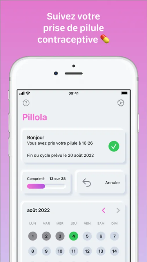 Pillola permet d'enregistrer et de suivre votre prise de pilule contraceptive