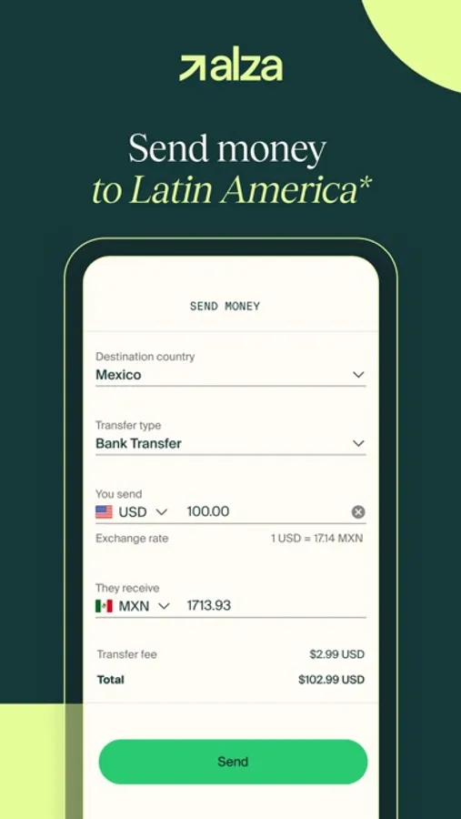 Send money abroad seamlessly - Use your checking account balance to send money abroad to a bank account, debit card, or cash pickup location in just a few easy steps. Say goodbye to waiting in line and paying hidden fees.