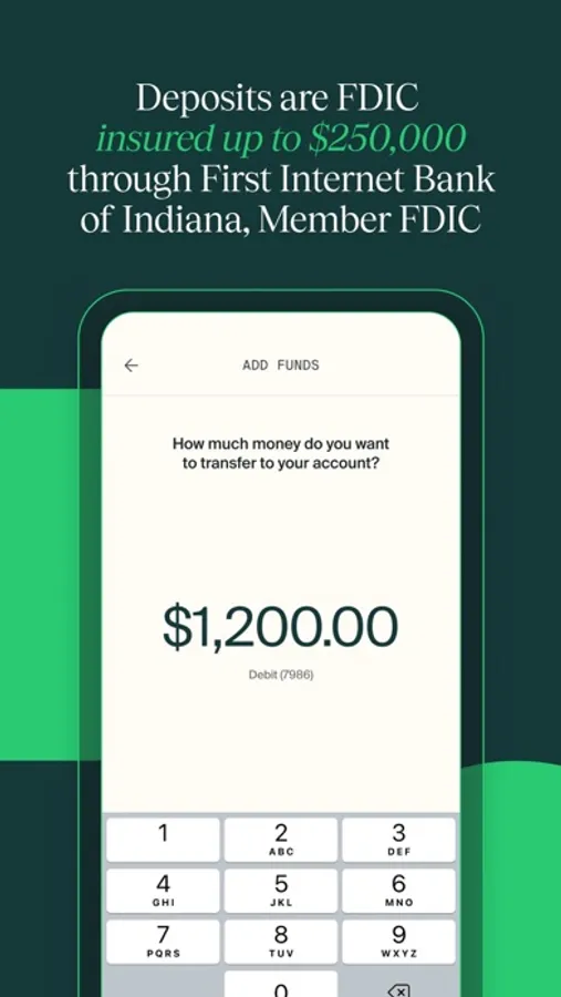 3. Your money is FDIC insured up to $250,000 per depositor per ownership category by our banking partner, First Internet Bank of Indiana, member FDIC.