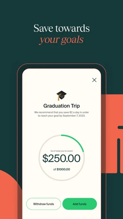 Saving made simple with a Goal account - Saving up for a big purchase or a trip to visit family? Just tell us your goal and timeline and we’ll help you stay on track.