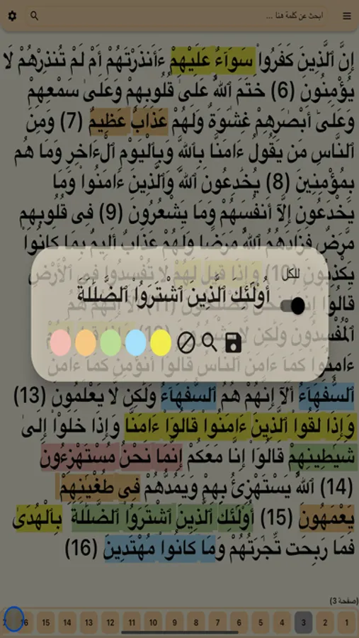 ٤ - اختيار التلوين لكل الكلمات المتكرره في القران الكريم او فقط للتحديد
