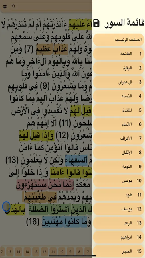٧- امكانية التلوين لمحدد فقط او لكل القران