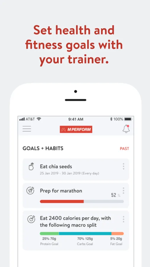With the M Perform Coaching App, you can start tracking your traininig and meals, measuring results, and achieving your health aand fitness goals, all with the help of your coach