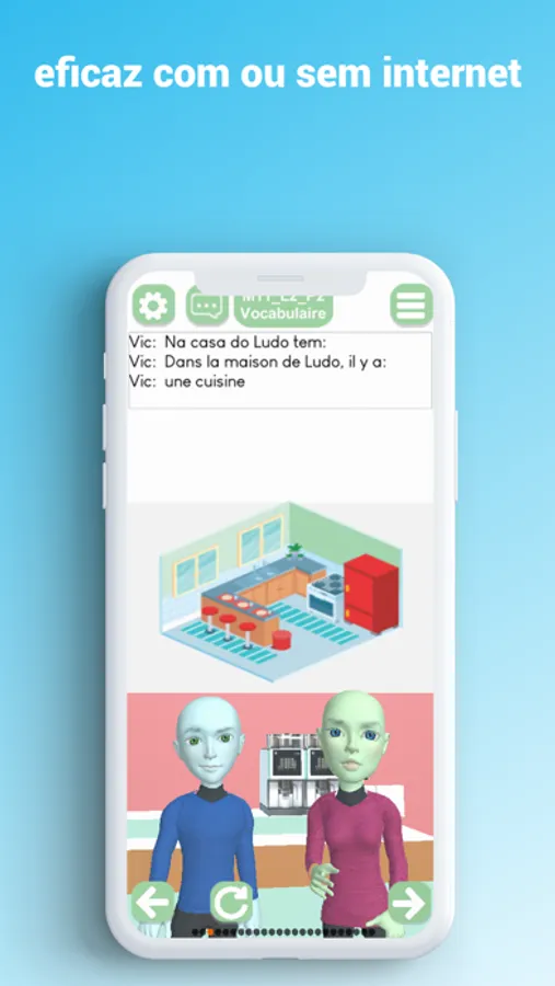 Uma vez que as explicações são dadas numa língua que você compreende, isto reduz consideravelmente o seu nível de stress e permite-lhe aprender o conteúdo educacional mais rapidamente. Há também muitas atividades, incluindo o reconhecimento de voz, para melhorar a sua pronúncia, facilitar a compreensão e memorização e tornar a aprendizagem mais divertida!