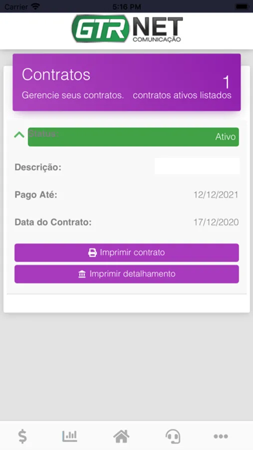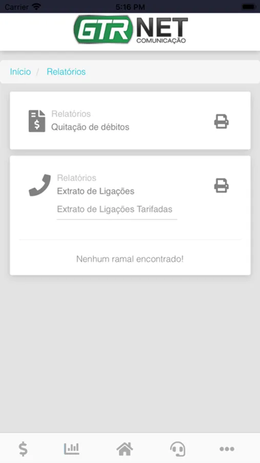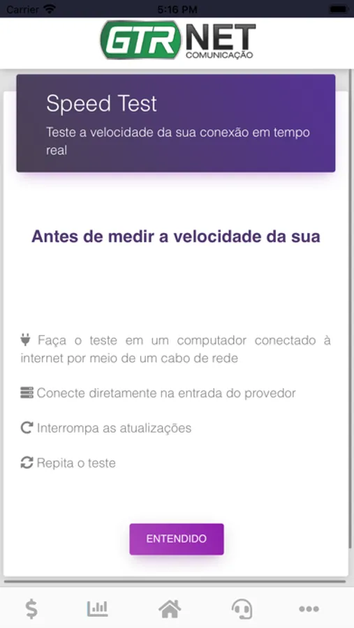 Aplicativo para serviços de atendimento ao cliente GTR Net