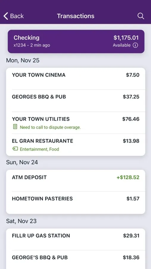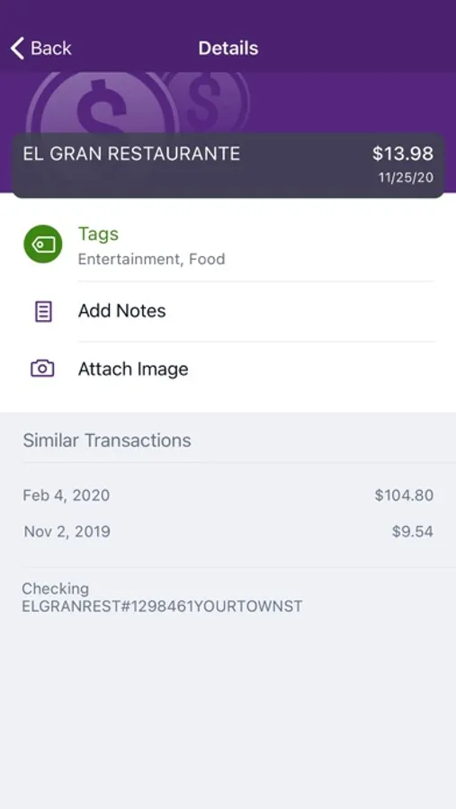 • Keep your transactions organized by adding tags, notes, and photos of receipts and checks.