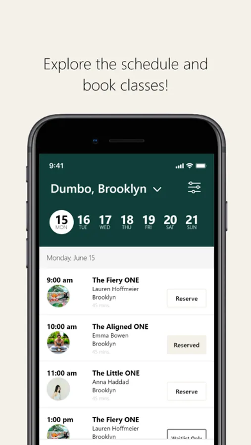 Track your reservations, choose your mat space,