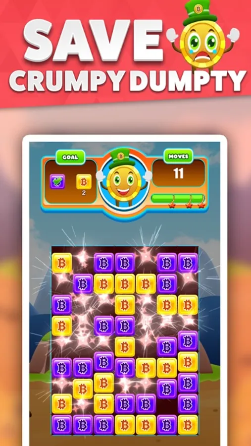 In this post-apocalyptic crypto-themed combination sorting game, you’ll combine multi-colored bitcoin blocks creating powerful combinations to help clear up the blockchain. Crumpty Dumpty will help guide you through endless amounts of levels where using your color-matching skills you’ll create chain-clearing combination of Bitcoin Blocks.