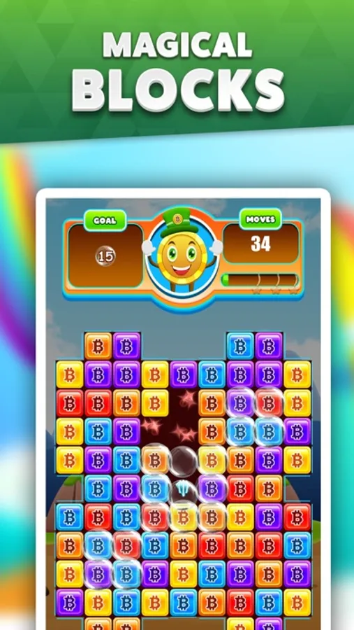 Using his magical Bitcoin Blocks, he is able to keep Leprechaunis Bitcoinitis out of Crypto Kingdom. However, his blocks only carry a certain amount of BTC energy and in order to keep the forcefield strong, you must combine like-colored magical blocks in order to create a stronger Bitronus.