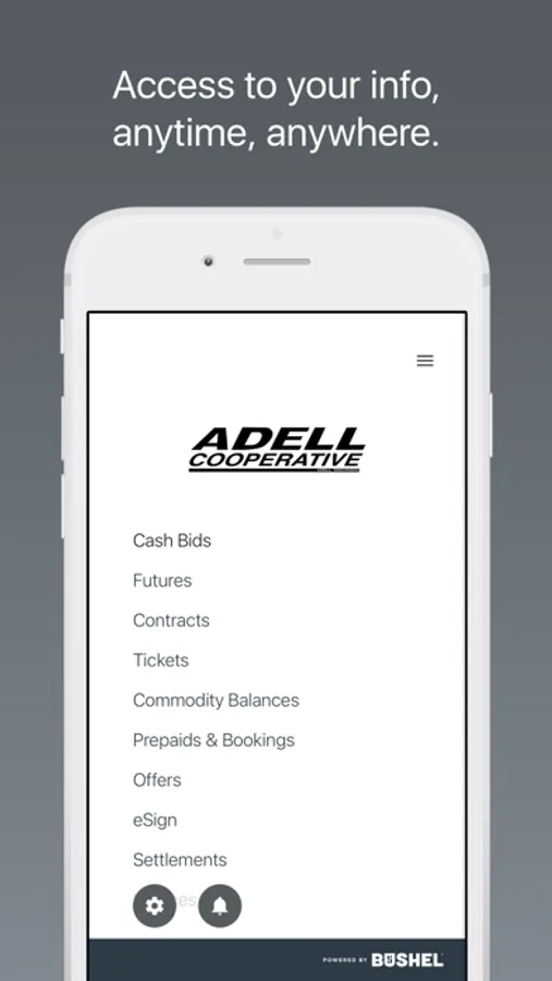 The Adell Cooperative app is free, secure, and developed by the industry-leading Bushel platform.