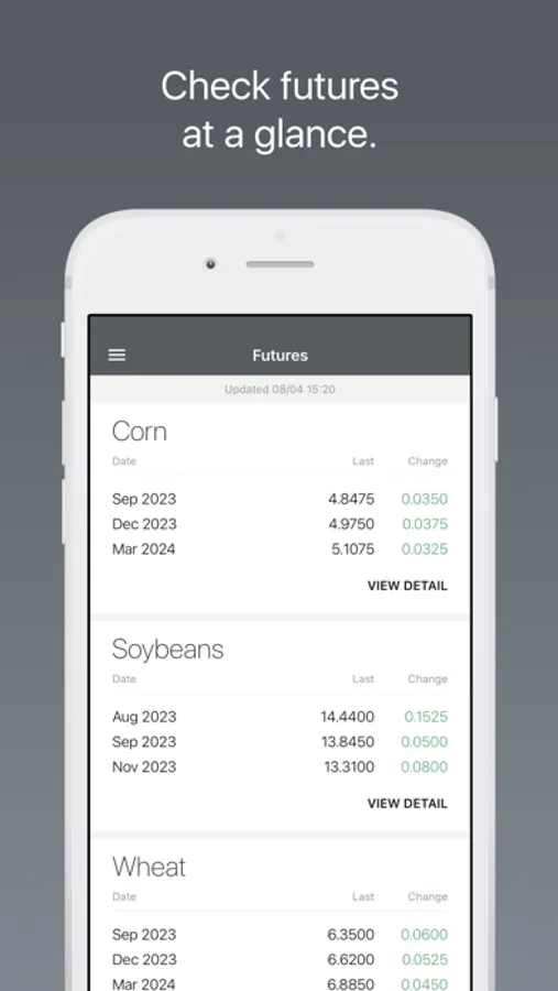 Futures: See Grains, Feed, Livestock, and Ethanol futures listed in order of your preference