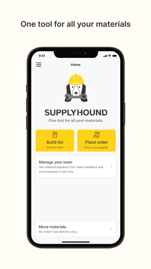SupplyHound is an online ordering and collaboration app for construction materials. Order online from all your suppliers, schedule for Will Call or delivery and coordinate with your team all in one app.