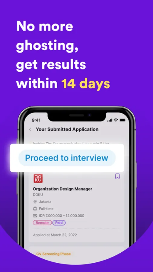 • Receive invitations from 2,500+ active recruiters who check CVs from Dealls Jobs every day.