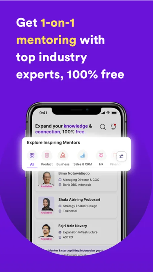Our mission is to democratize access for Indonesians to land jobs & find mentors to advance their career easily. We match you to urgently-hiring jobs & top mentors for career advice, 100% free.