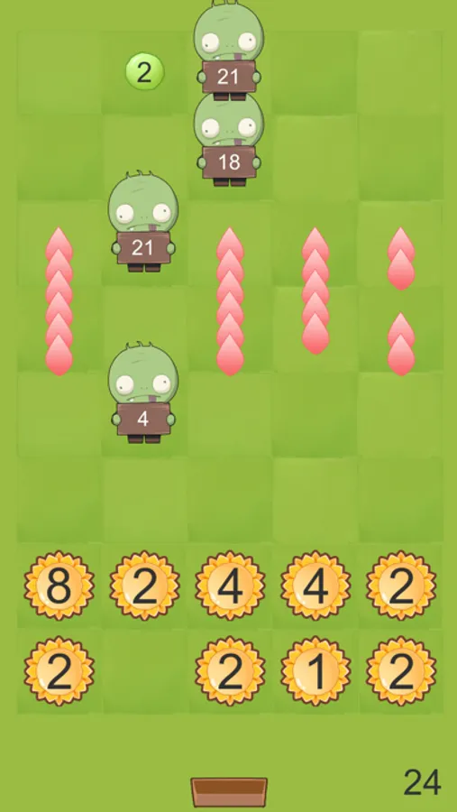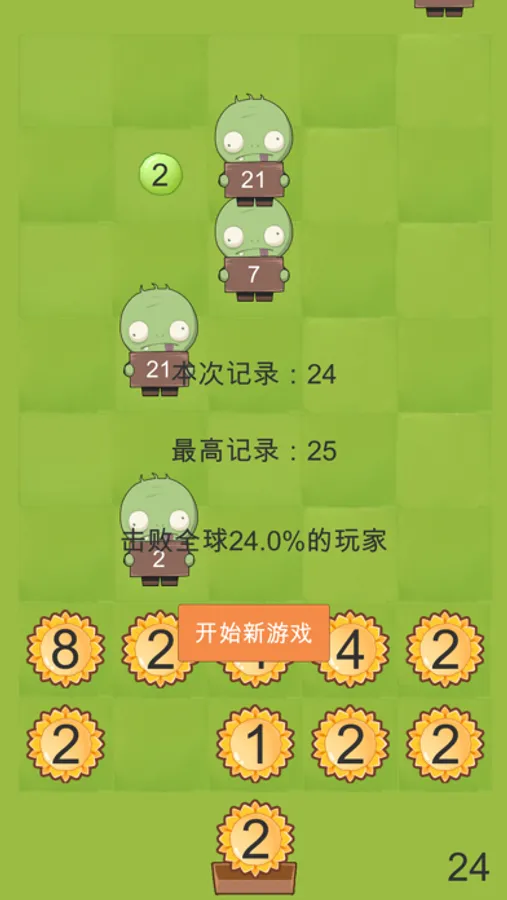 当植物快铺满下方草坪时,它们的伤害不足以击败越来越多的僵尸,而一旦僵尸登上最后两行草坪,游戏便会失败。将两个黄色花朵拖在一起还有合成玩法?