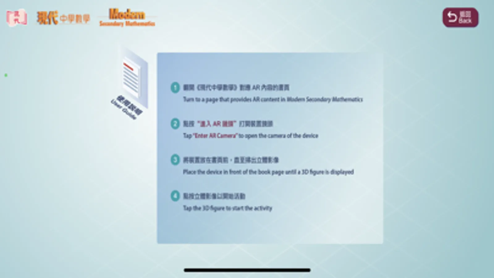'Modern SecMaths AR 3A' aligns with 'Modern Secondary Mathematics' 3A textbook to present 3D models using AR technology and provide inquiry-based activities for students to scaffold their mathematical concepts through observation and experimentation.