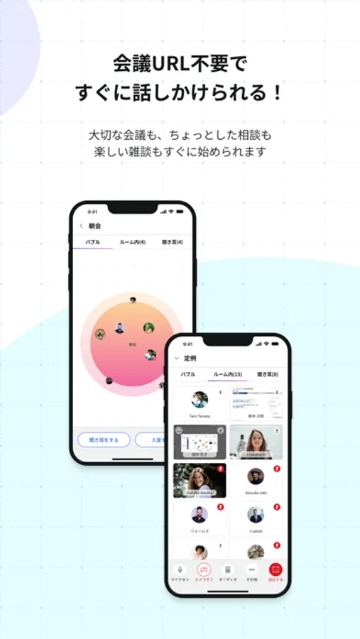 会話は、URL不要で会話をはじめられ、聞くだけの参加もOKです。