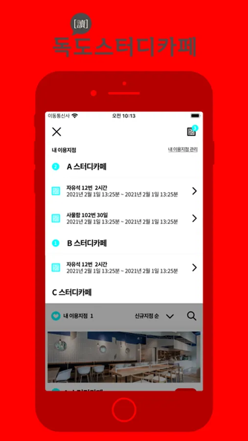 독도스터디카페 어플리케이션을 통해 서비스 이용 및