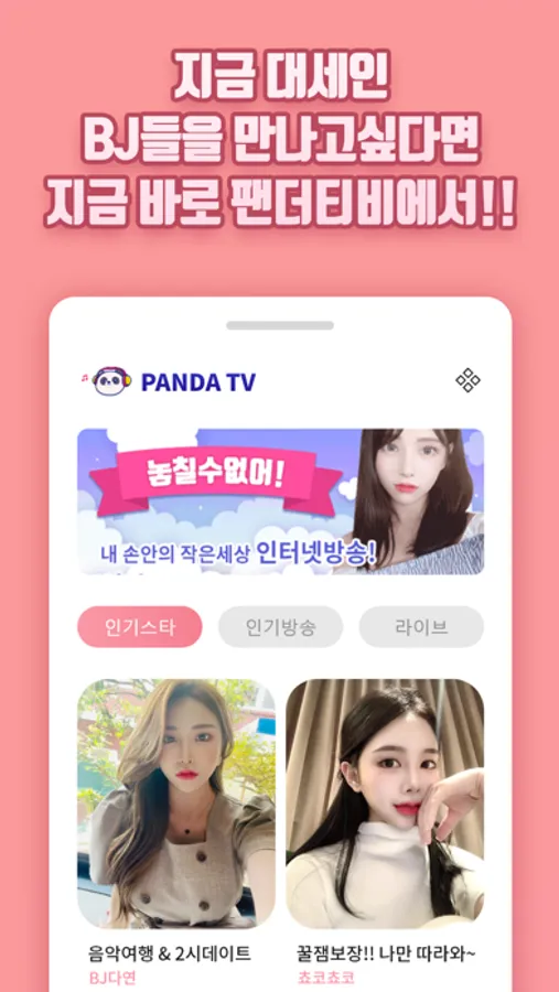 팬더티비는 BJ와 직접소통하며 인터넷방송으로 신개념 양방향 24시간 무료인터넷방송국입니다